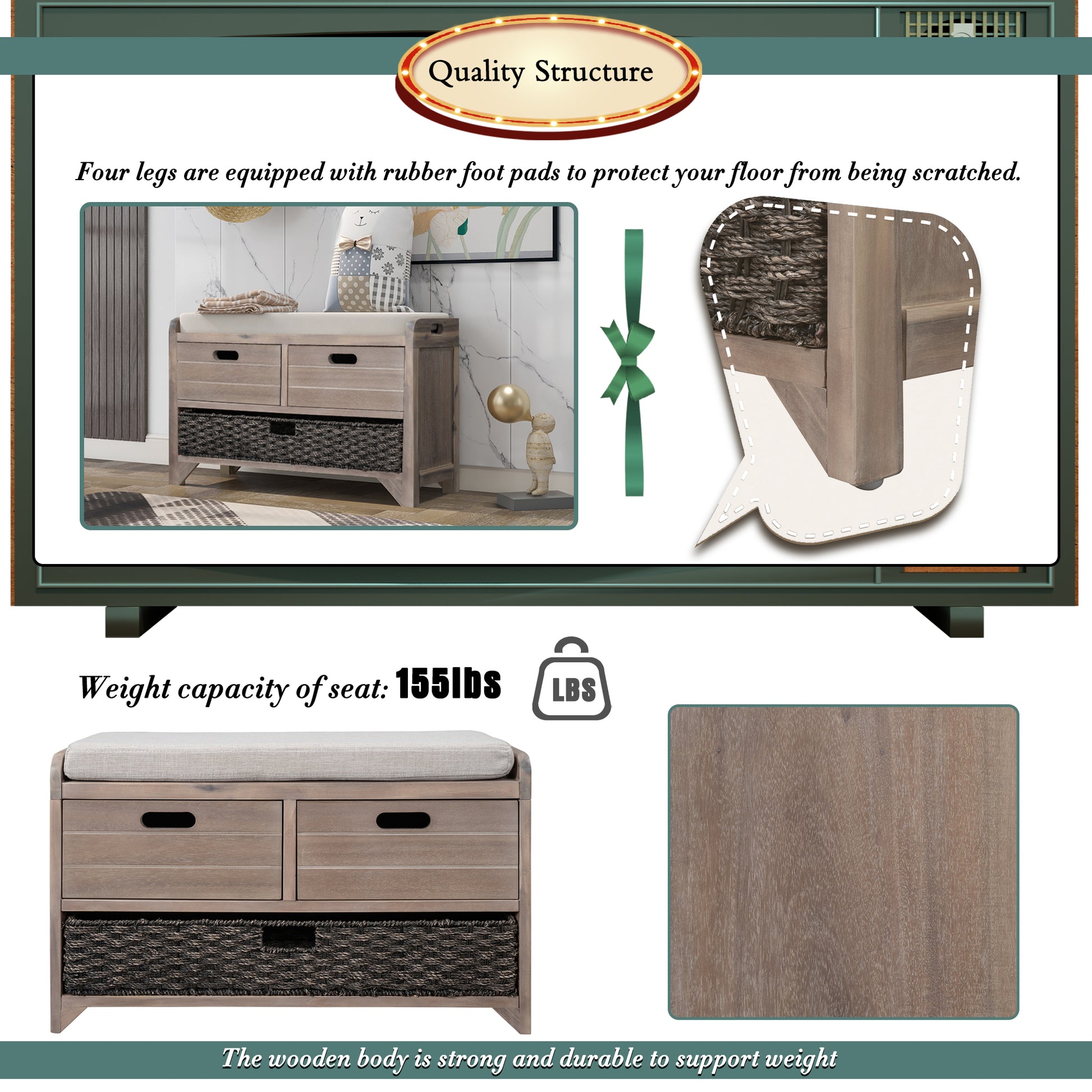 Product Name:TREXM Storage Bench with Removable Basket and 2 Drawers, Fully Assembled Shoe Bench with Removable Cushion (White Washed)